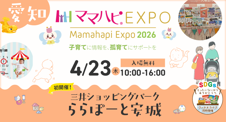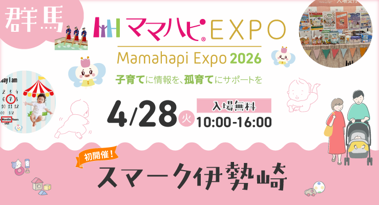 ログイン 新規登録 アプリダウンロードはこちら 申込受付中イベント一覧 過去の開催レポート イベントQ&A 混雑状況 ママハピ®とは、ママ・パパなど子育てに関わる 全ての人を応援するサービスの総称です お知らせ一覧 セミナー【ママハピ】子育てママにおススメ!☆無料オンラインセミナー 2026年度 開催情報 お知らせ【受賞企業発表】ウーマンエンパワーアワード2025 イベントママハピEXPO予約受付会場はこちら! お知らせ【2026年度会場に対応】ママハピ公式アプリ アップデート版リリース お知らせ2026年度Littleマルシェ出店者様募集開始のお知らせ お知らせ利用規約改定のお知らせ ●イベント 関東 中部 近畿 九州 開催予定一覧 もっと見る ●セミナー もっと見る ●再就職支援 【次回6月開催予定】再就職応援<子育てブランクもキャリア>オンラインセミナー いつかは働きたいけれど、何から始めればいいの?踏み出したいが、自信がないブラン 【柏】11/26(水)女性のおしごとフェア@ららぽーと柏の葉 【市川】10/22(水)女性のおしごとフェア@ニッケコルトンプラザ 【船橋】9/9(火)女性のおしごとフェア@ららぽーとTOKYO-BAY もっと見る ●読み物 【最終回】子育て漫画「わたなべ家vol.52」最新作更新しました! 子育て漫画「わたなべ家vol.51」 子育て漫画「わたなべ家vol.50」 子育て漫画「わたなべ家vol.49」 もっと見る ●お出かけ 星野リゾート リゾナーレトマム「北海道の大地を感じるグレイスフルステイ」 星野リゾート リゾナーレ小浜島で思うがままの離島休日を リゾナーレ熱海 全室オーシャンビューで絶景と花火を独り占め 雄大な自然が広がるリゾートホテル 星野リゾート リゾナーレ八ヶ岳 もっと見る ●スキルアップ講座 知って得する♪ストーリーズの小ワザ①/フレーム もっと見る ●関連団体・会社 売上の1.7%を寄付しています 無料オンラインセミナー受付中