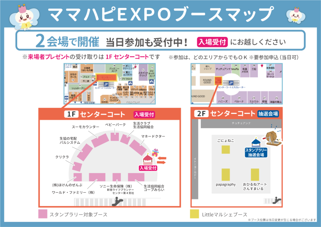 ・イベントスペースの混雑状況により、入場開始時間より10分~15分程度早く入場のご案内する場合もございます。 ・プレゼントは1世帯1つのお渡しとなります。