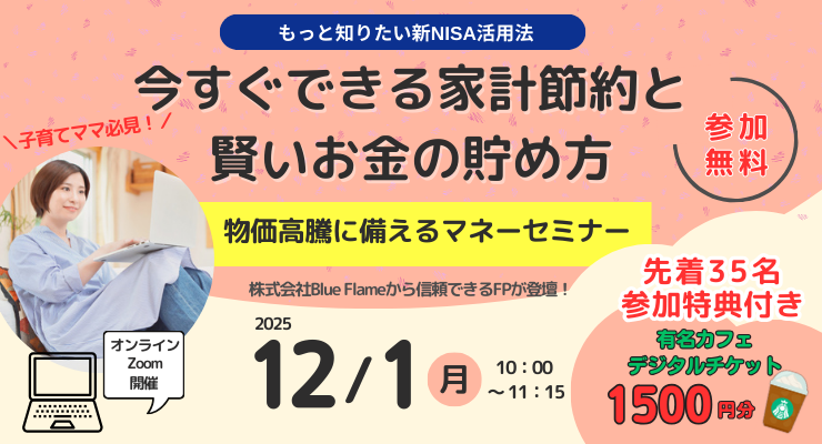【申し込み開始】12/1(月)初回参加特典あり《無料オンライン》今すぐできる家計節約と賢いお金の貯め方