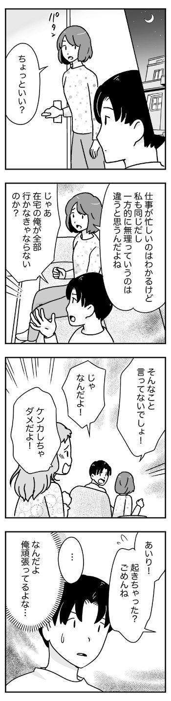ママハピでは子育て漫画「わたなべ家」の連載が2024年9月から始まりました!月に3回更新予定です。 皆さんの実話やエピソードを元に脚色を加えて、子育て家庭の悲喜こもごもをご紹介できたらと思いますので、ママハピ公式Instagramの投稿欄で、皆さんの背景やエピソードのネタもぜひお待ちしています! 「わたなべ家vol.48」 ←前回のお話 最初から読む